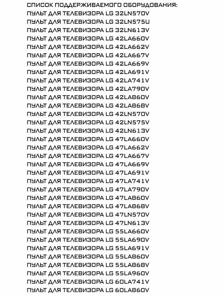 Совместимые модели : | LG 32LN570V, LG 32LN575U, LG 32LN613V, LG 42LA660, LG 42LA662, LG 42LA667, LG 42LA669V, LG 42LA691, LG 42LA741V, LG 42LA790V, LG 42LA860V, LG 42LA868V, LG 42LN570, LG 42LN575, LG 42LN613, LG 47LA660, LG 47LA662, LG 47LA667, LG 47LA669, LG 47LA691, LG 47LA741, LG 47LA790V, LG 47LA860, LG 47LA868V, LG 47LN570V, LG 47LN613V, LG 55LA660V, LG 55LA690, LG 55LA691, LG 55LA860, LG 55LA868, LG 55LA960, LG 60LA741, LG 60LA860 |