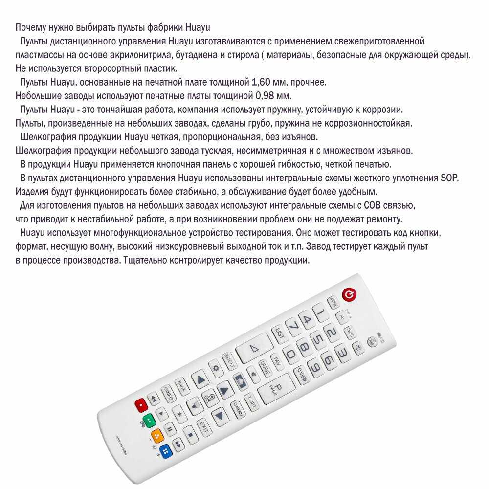 1 отзывов пользователей o Huayu Пульт для телевизора LG (AKB74915360)