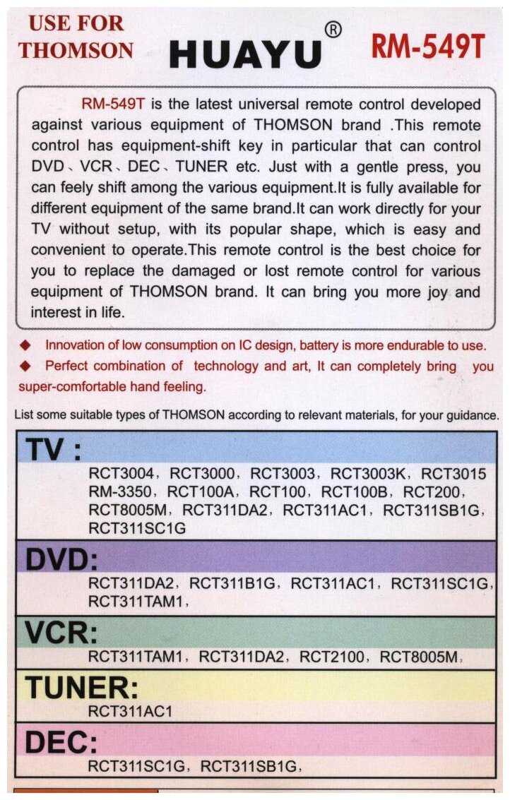 11 отзывов пользователей o Huayu Пульт ДУ RM-549T