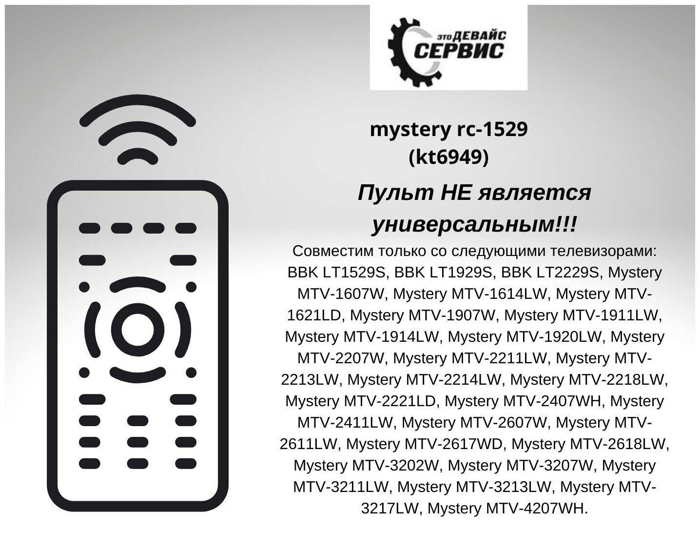 Назначение : | BBK LT1529S, BBK LT1929S, BBK LT2229S, Mystery MTV-1607W, Mystery MTV-1614LW, Mystery MTV-1621LD, Mystery MTV-1907W, Mystery MTV-1911LW, Mystery MTV-1914LW, Mystery MTV-1920LW, Mystery MTV-2207W, Mystery MTV-2211LW, Mystery MTV-2213LW, Mystery MTV-2214LW, Mystery MTV-2218LW, Mystery MTV-2221LD, Mystery MTV-2407WH, Mystery MTV-2411LW, Mystery MTV-2607W, Mystery MTV-2611LW, Mystery MTV-2617WD, Mystery MTV-2618LW, Mystery MTV-3202W, Mystery MTV-3207W, Mystery MTV-3211LW, Mystery MTV-3213LW, Mystery MTV-3217LW, Mystery MTV-4207WH |