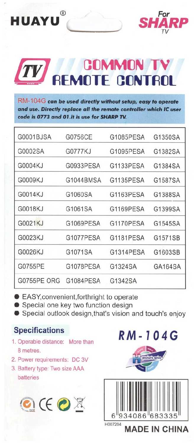 3 отзывов пользователей o Huayu Пульт (RM-104G)