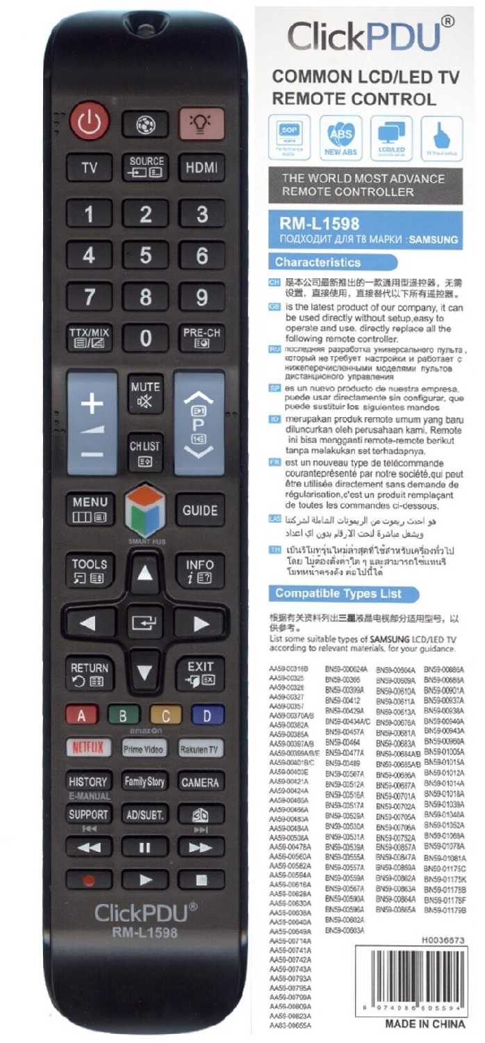Пульт купили для телевизора Самсунг. Батарейки вставили и сразу телевизор им включили, все идеально, все функции поддерживает согласно заявленным характеристикам