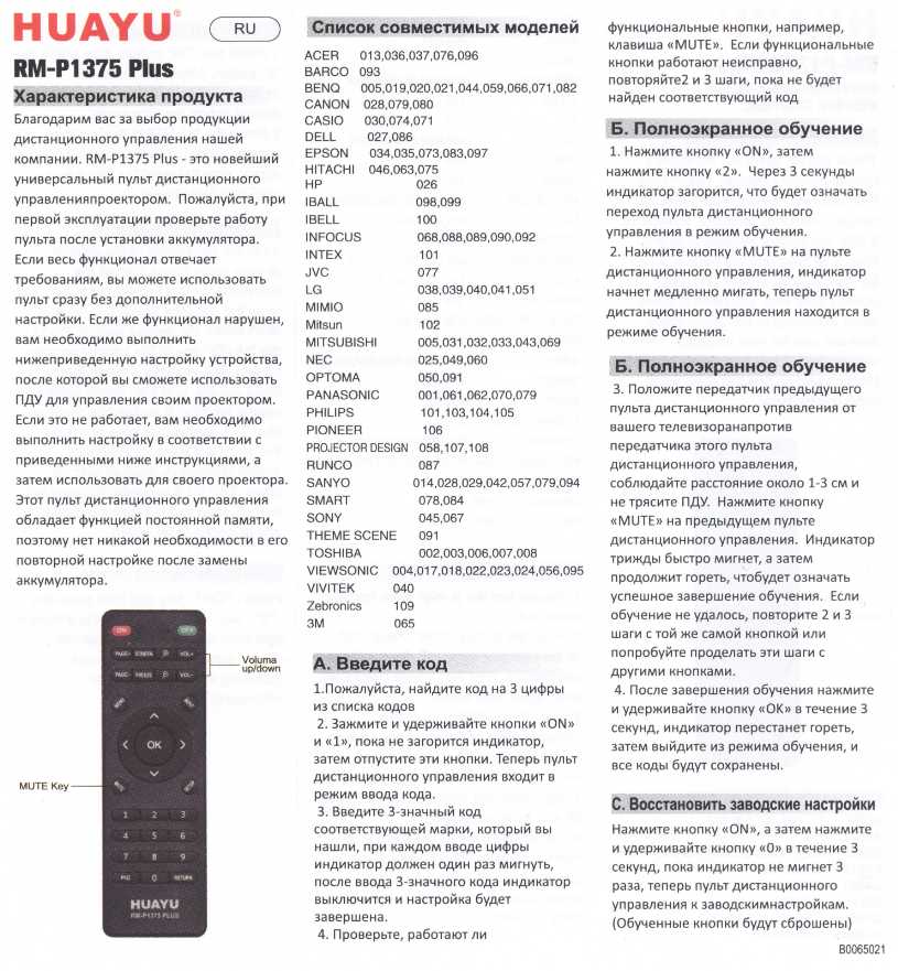 13 отзывов пользователей o Huayu Пульт универсал (RM-P1375)