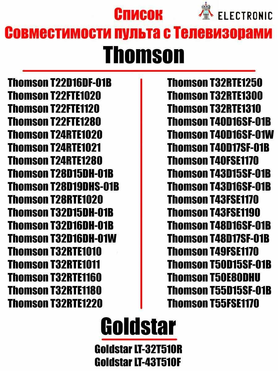 | Производитель совместимых устройств : | Erisson, GoldStar, Shivaki |