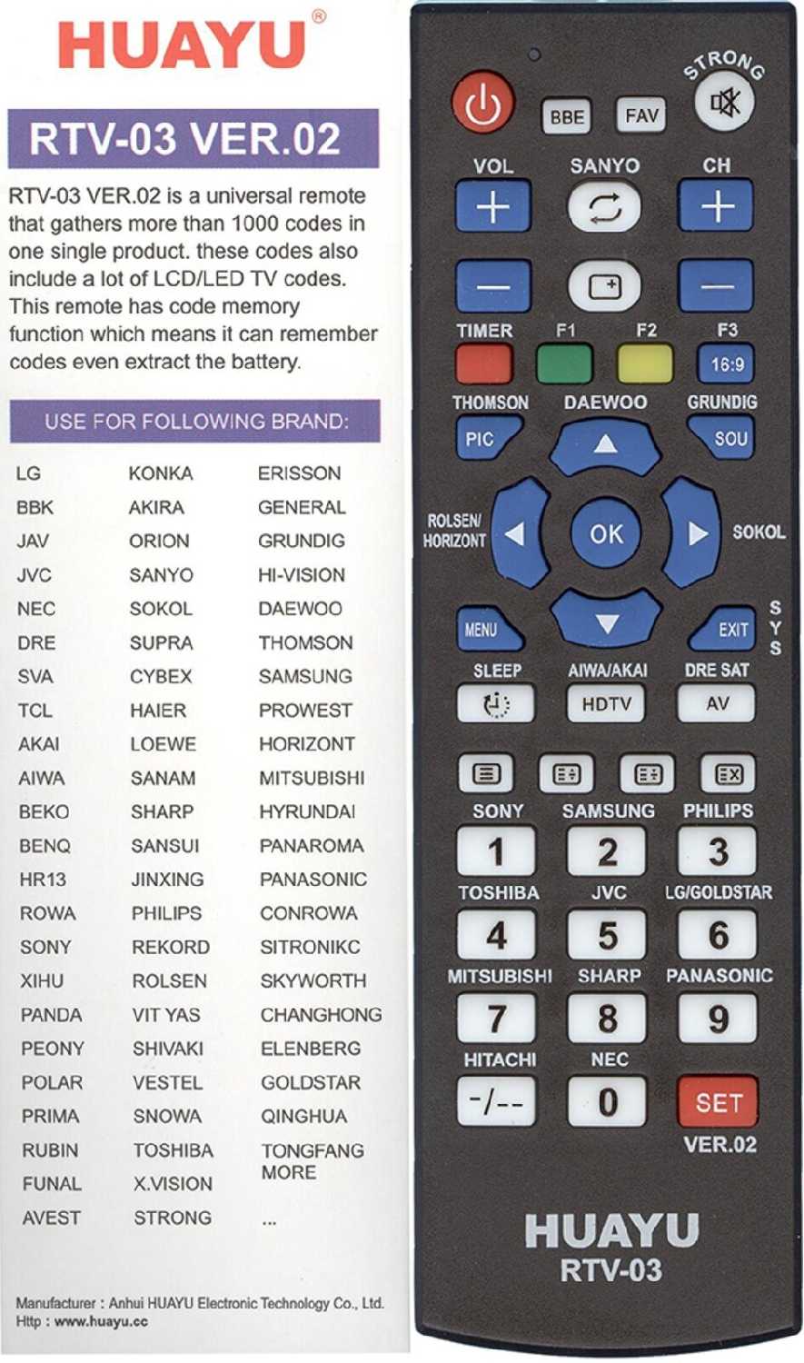 - тип пульта: универсальный