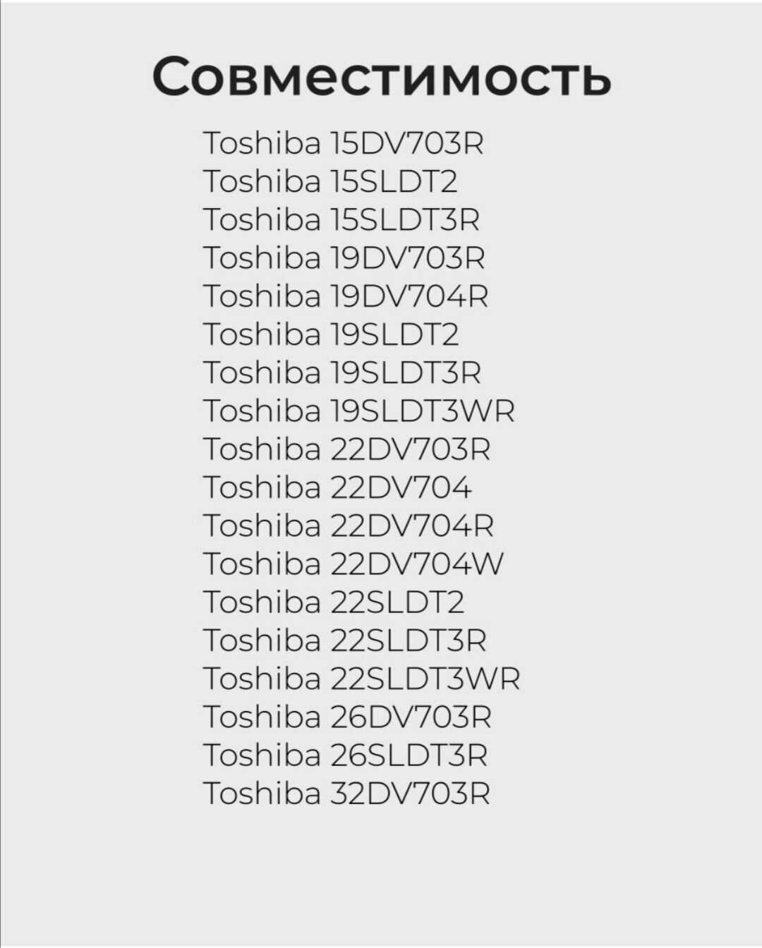 Назначение : | 15DV703R, 15SLDT2, 15SLDT3R, 19DV703R, 19DV704R, 19SLDT2, 19SLDT3R, 19SLDT3WR, 22DV703R, 22DV704, 22DV704R, 22DV704W, 22SLDT2, 22SLDT3R, 22SLDT3WR, 26DV703R, 26SLDT3R, 32DV703R |