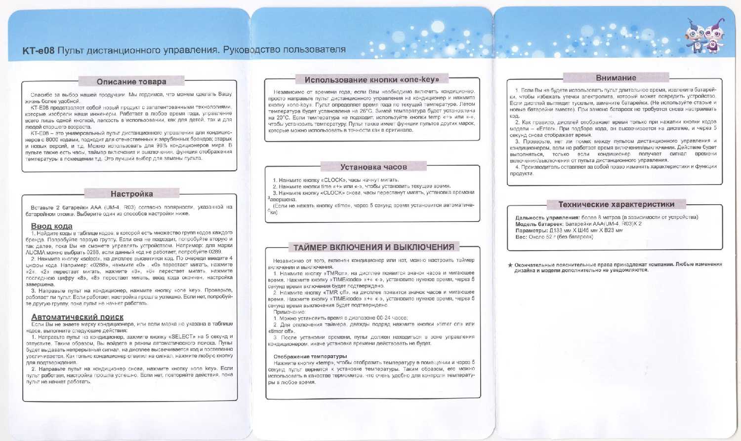 - + Помог в тяжелой ситуации - в эту жару накрылся пульт от старого кондиционера Bork. Починить старый не удалось, новых пультов для такой модели нет, заказал этот. Покупка оказалось удачной, пульт настроился с первого раза, все работает.