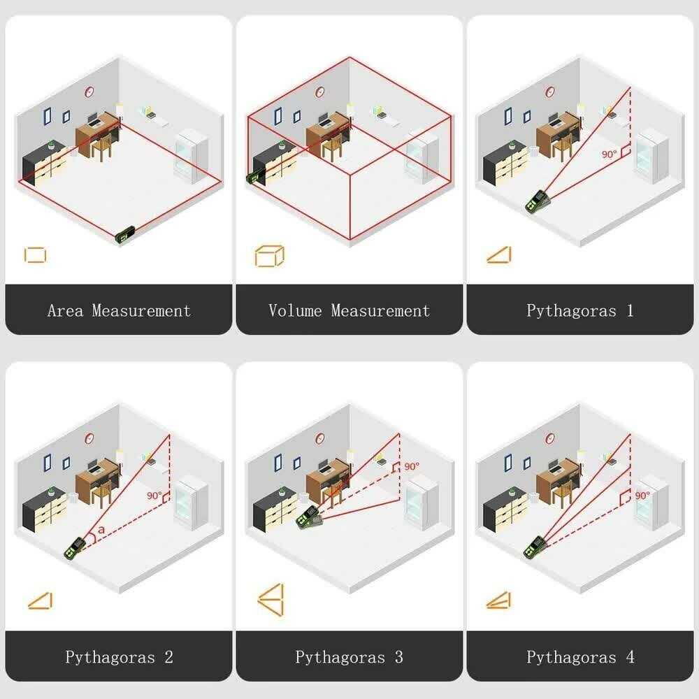 Функции и особенности : | USB-порт, автоматическое отключение, встроенная память, звуковая индикация, определение мин. и макс. значений, ударопрочный корпус, функция Пифагора, функция непрерывного измерения, функция расчета объема, функция расчета площади, функция расчета углов, функция сложения/вычитания |