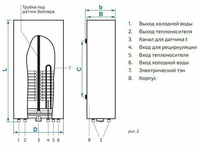- - нет канала для датчика от котла только дырочка в крышке, а без датчика это просто электрический бойлер а не бойлер косвенного нагрева