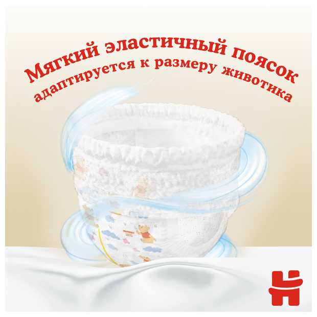 - Дизайн с героями Disney («Винни Пух») делает подгузники визуально привлекательными для детей.