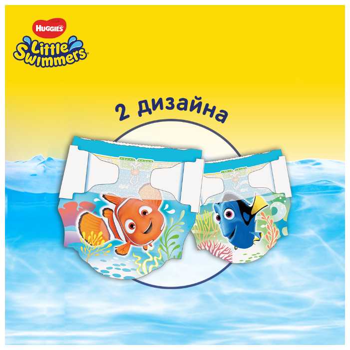 | Дополнительная информация : | Эластичный поясок для лучшего прилегания с героями Disney. Два замечательных дизайна с героями Disney на самих подгузниках. Трусики-подгузники Huggies Little Swimmers размер 2-3 (вес 3-8кг) для плавания рекомендованы для использования в бассейне и море. |