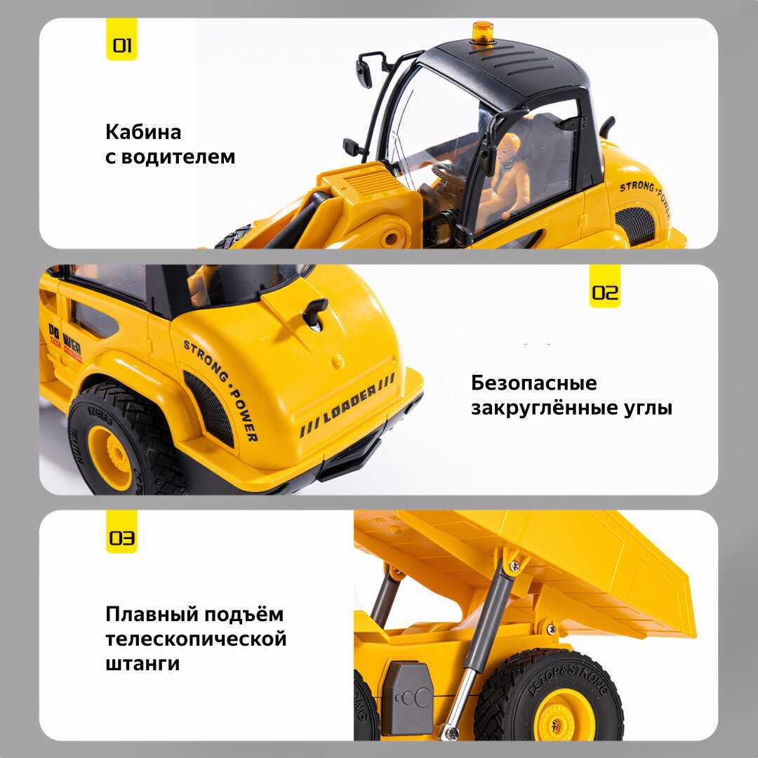 - + хорошая цена, интересный набор, взаимодействие самосвала с трактором отдичное. Надолго хватает заряд. Есть функция demo -режим