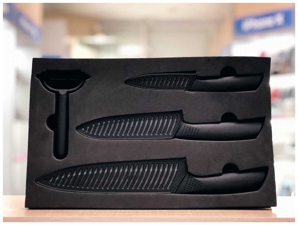 - + Очень крутые ножи, несмотря на то, что керамика! Первый комплект служил больше года, пока я сама два ножа не коцнула. Заказали второй комплект, теперь я просто более внимательна! Режут замечательно, не тупятся. Металлическими ножами почти уже не пользуюсь!