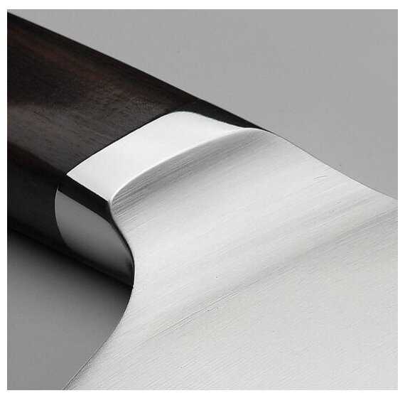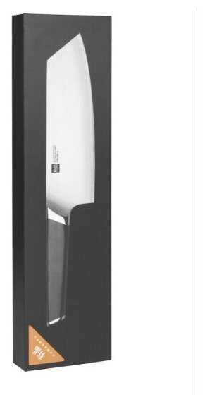 Нож из коробки очень острый! Ширина 6.3 мм толщина в обухе 2.2 мм. Соединение с ручкой фултанг. Трёхслойное лезвие в линзу. Качество великолепное. Резал мясо с хрящами и полузамороженное без последствий для лезвия. Шинковать овощи и фрукты соломкой одно удовольствие. За счёт ширины можно использовать как лопатку. Пишут что нож накири но по изгибу лезвия я бы считал что это шеф нож. Доволен ножом на 1000%