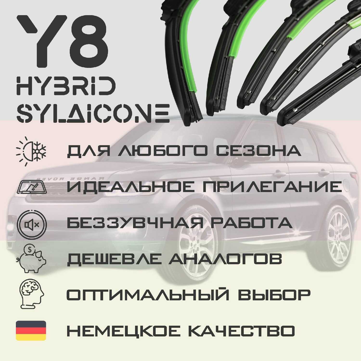 Отзывы о Комплект дворников Range Rover Sport L494 LW дорест. 2013-2017 Гибридных силиконовых щеток (Y8)