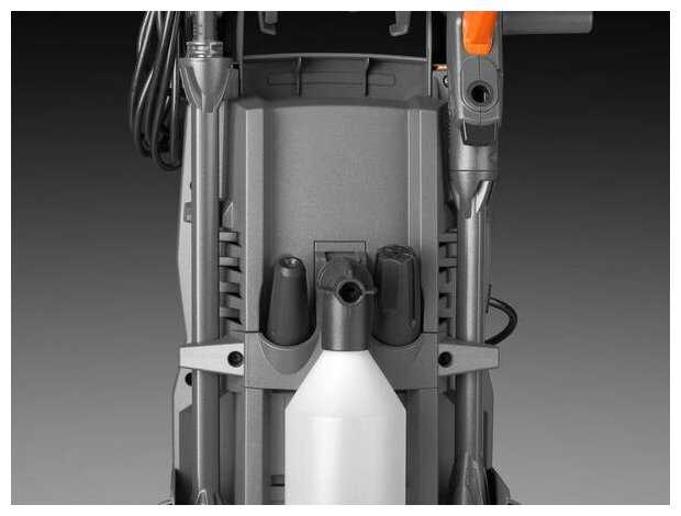 Длина шланга высокого давления, предохранительный клапан, две насадки. Сменные форсунки.