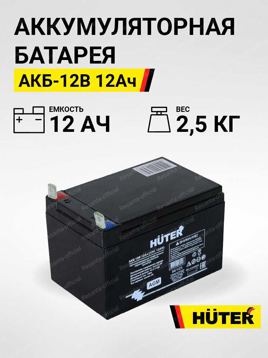 Дополнительная информация : | Аккумулятор Huter 64/1/23, 12 В 12 Ач |