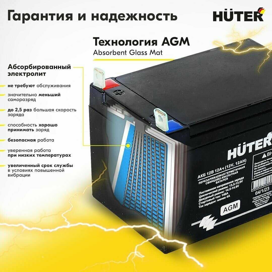 Отзывы о Аккумуляторная батарея Huter 64/1/23 (12В)