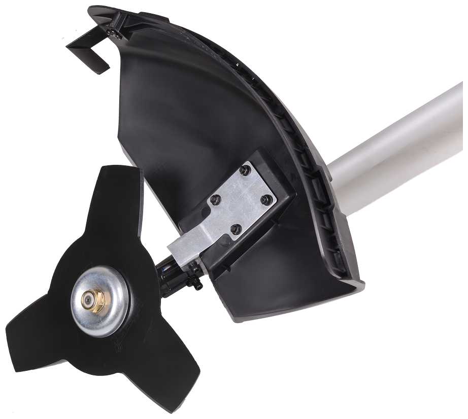 - Позволяет использовать как леску (до 3 мм), так и металлический диск из комплекта для грубых работ.