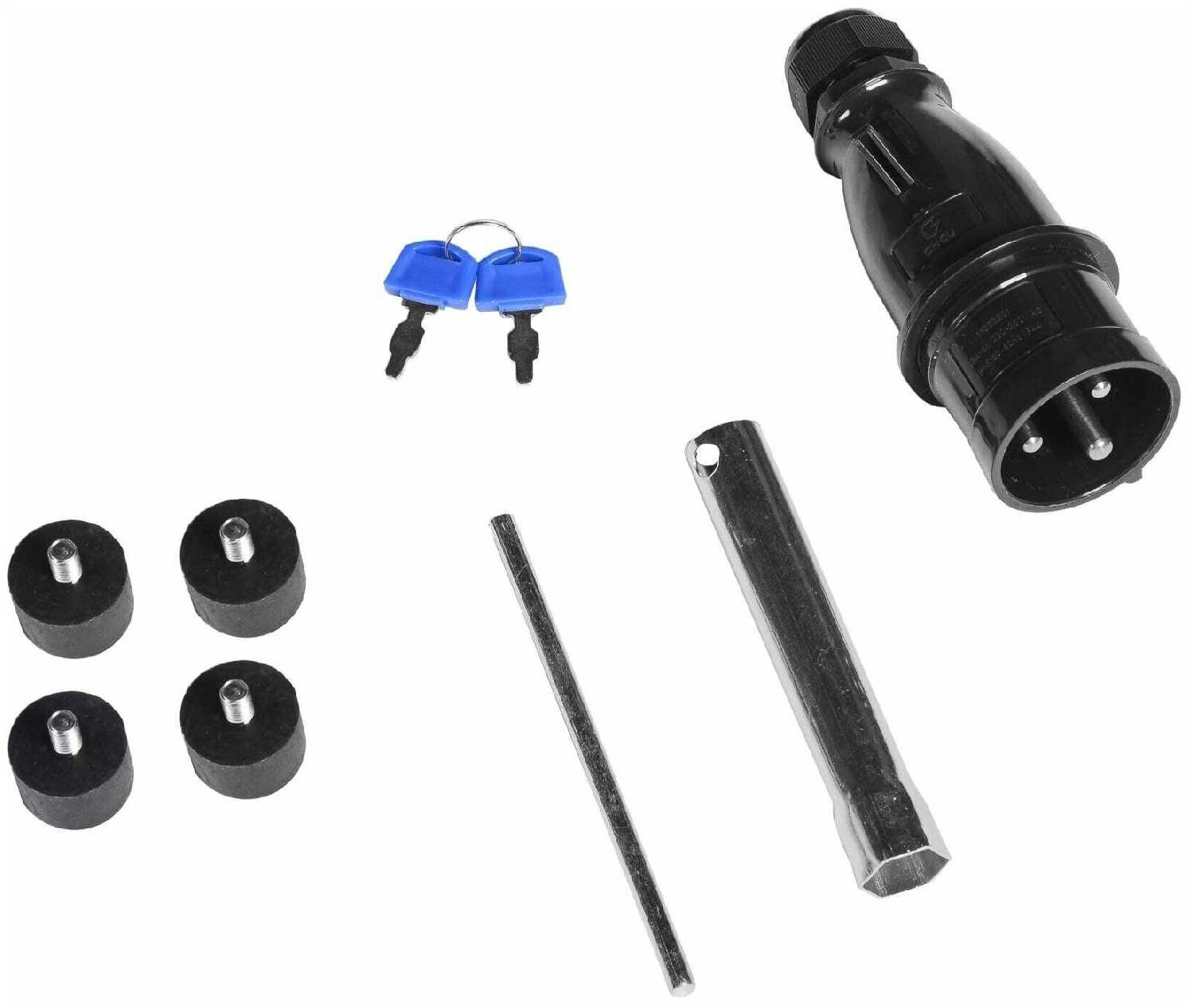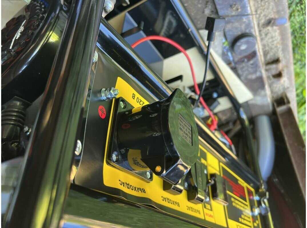 Обязательно нужен внешний аккумулятор для электростартера и колеса (штатно не предусмотрены), так как масса заправленного генератора превышает 70 кг. Рама имеет монтажные отверстия для установки колесных опор. Масло в комплект не входит — перед первым запуском необходимо залить 1.1 л моторного масла. -