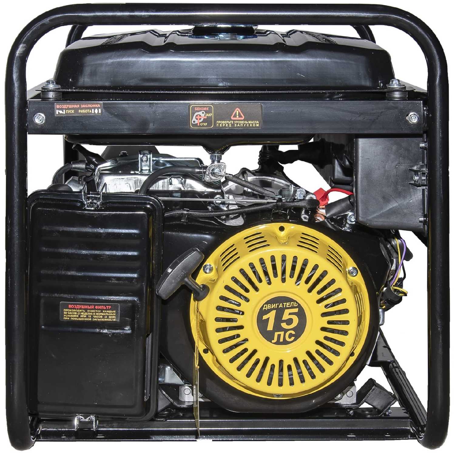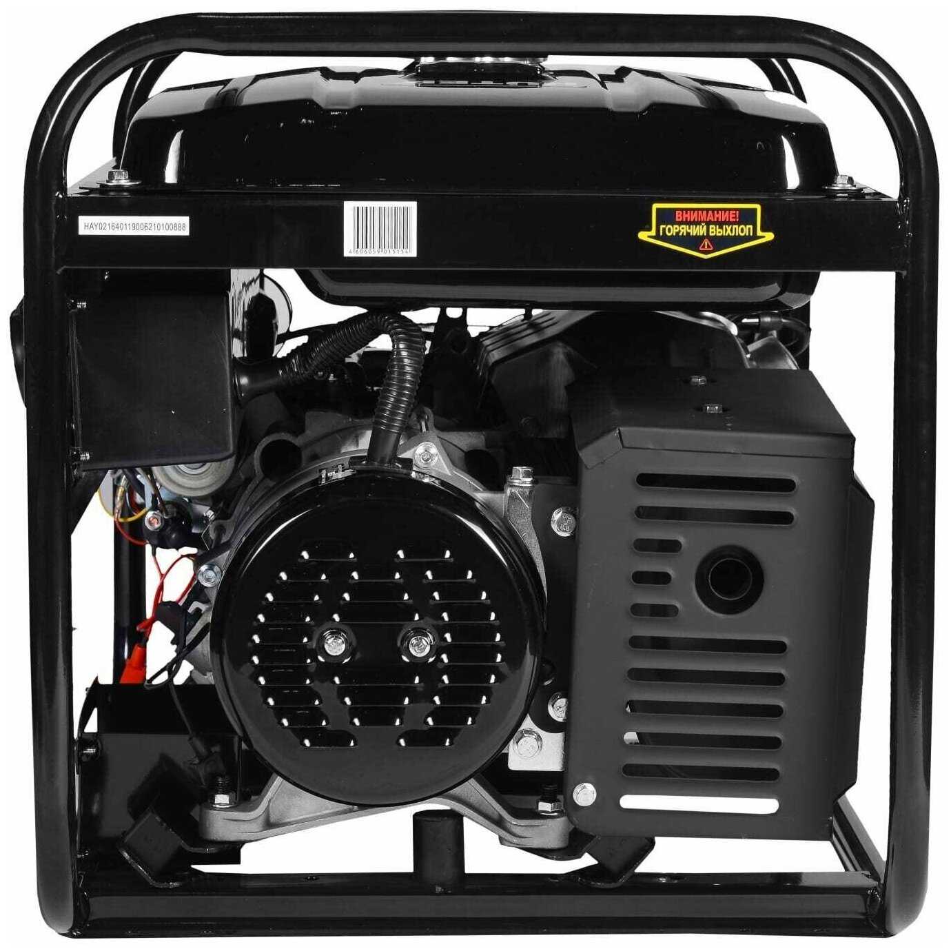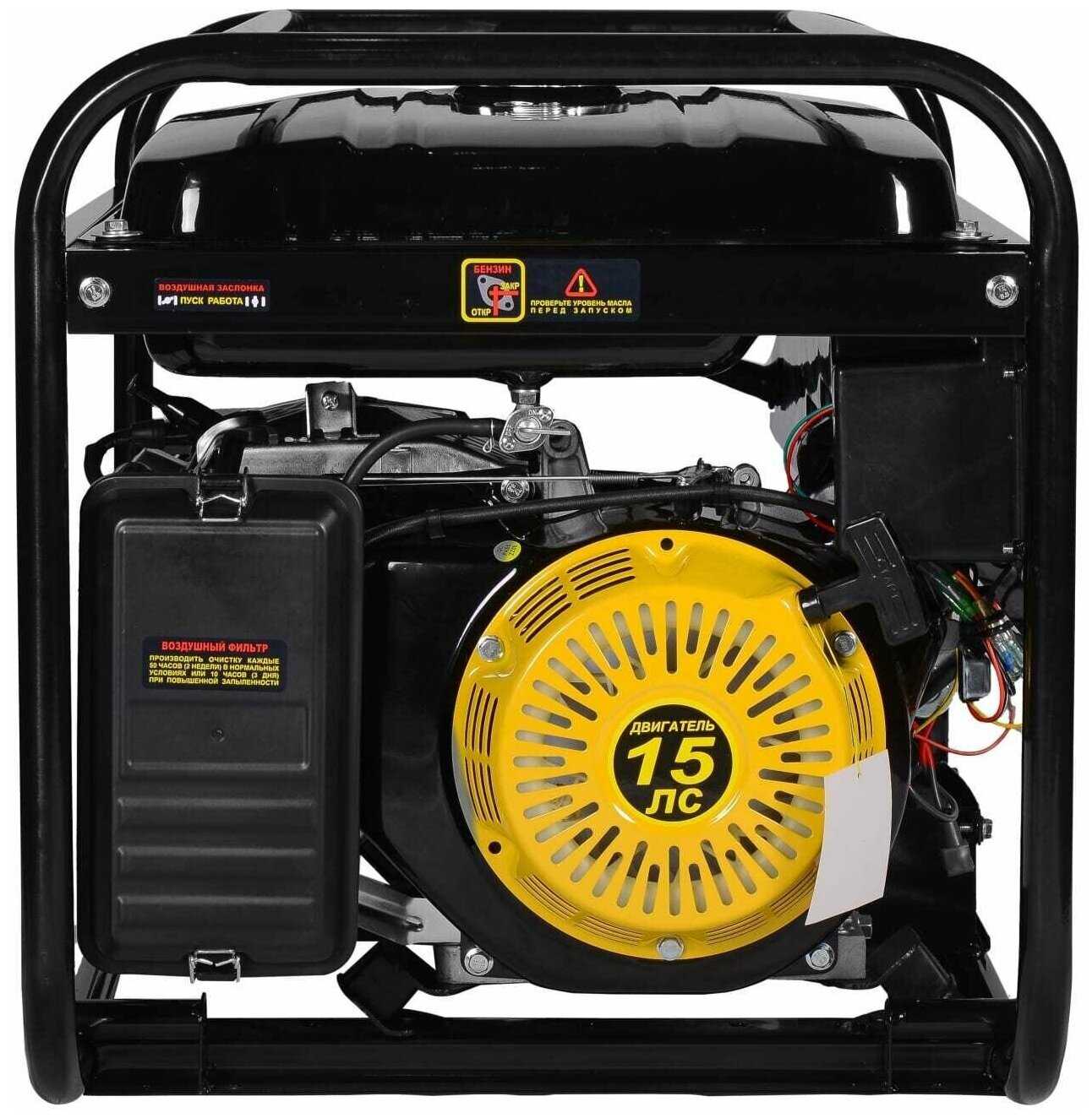 Отличный генератор на 6кВТ. Вместительный бак, при расходе бензина примерно 400г на 1кВт нагрузки, хватит на долго. Пусковых токов хватит, чтобы пользоваться инструментом, также легко вывезет сварочный аппарат! Очень легко заводится. При первом запуске на выключеном генераторе, необходимо один раз дернуть стартером, тем самым прогнать бензин по системе и после чего уже заводить генератор. Также есть электростартер. Если купить аккумулятор, то можно будет заводить с помощью ключа. Есть защита от малого уровня масла, которая позволит уберечь генератор, если масла меньше, чем нужно. Огромный плюс, что сервис находится в городе и в случае чего, отремонтируют очень быстро!