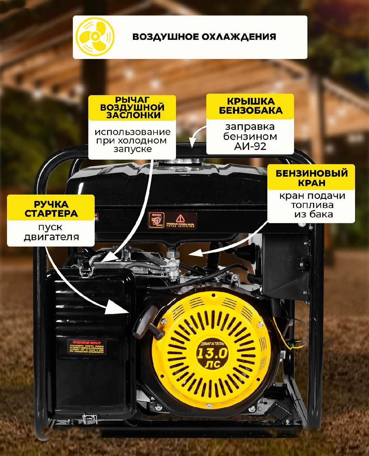 - + Хорошая мощность и надежность позволяют использовать данный генератор для различных задач, включая питание инструментов и оборудования на стройке.