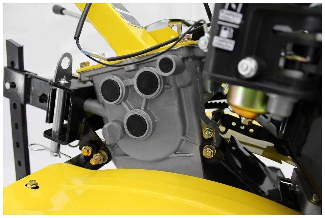 Цепной редуктор с алюминиевым корпусом требует заливки 1,5-2 л трансмиссионного масла (например, ТАД-17). Некоторые пользователи отмечали шум при работе, который исчезал после правильной регулировки. Важно проверять уровень масла перед каждым сезоном — его недостаток приводит к повышенному износу шестерён. -