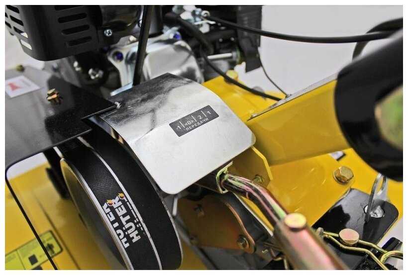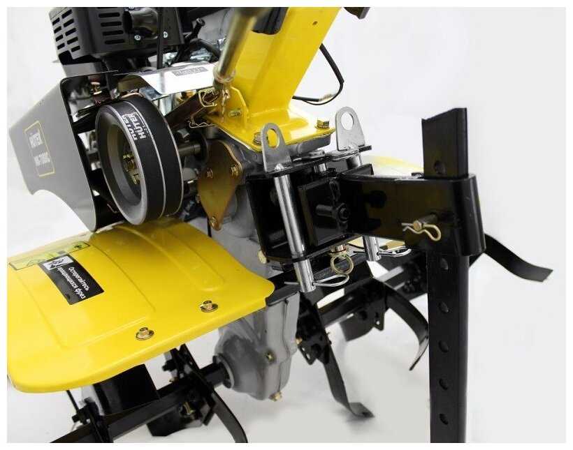 - Защитные крылья и кожух ремня предотвращают повреждение оператора летящими комьями земли.