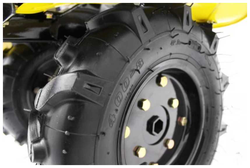 - Широкие колеса с глубоким протектором обеспечивают устойчивость на рыхлой и влажной почве.
