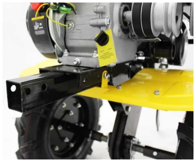 - Совместим с плугом, окучником, прицепом и снегоуборщиком, расширяя сферу применения.