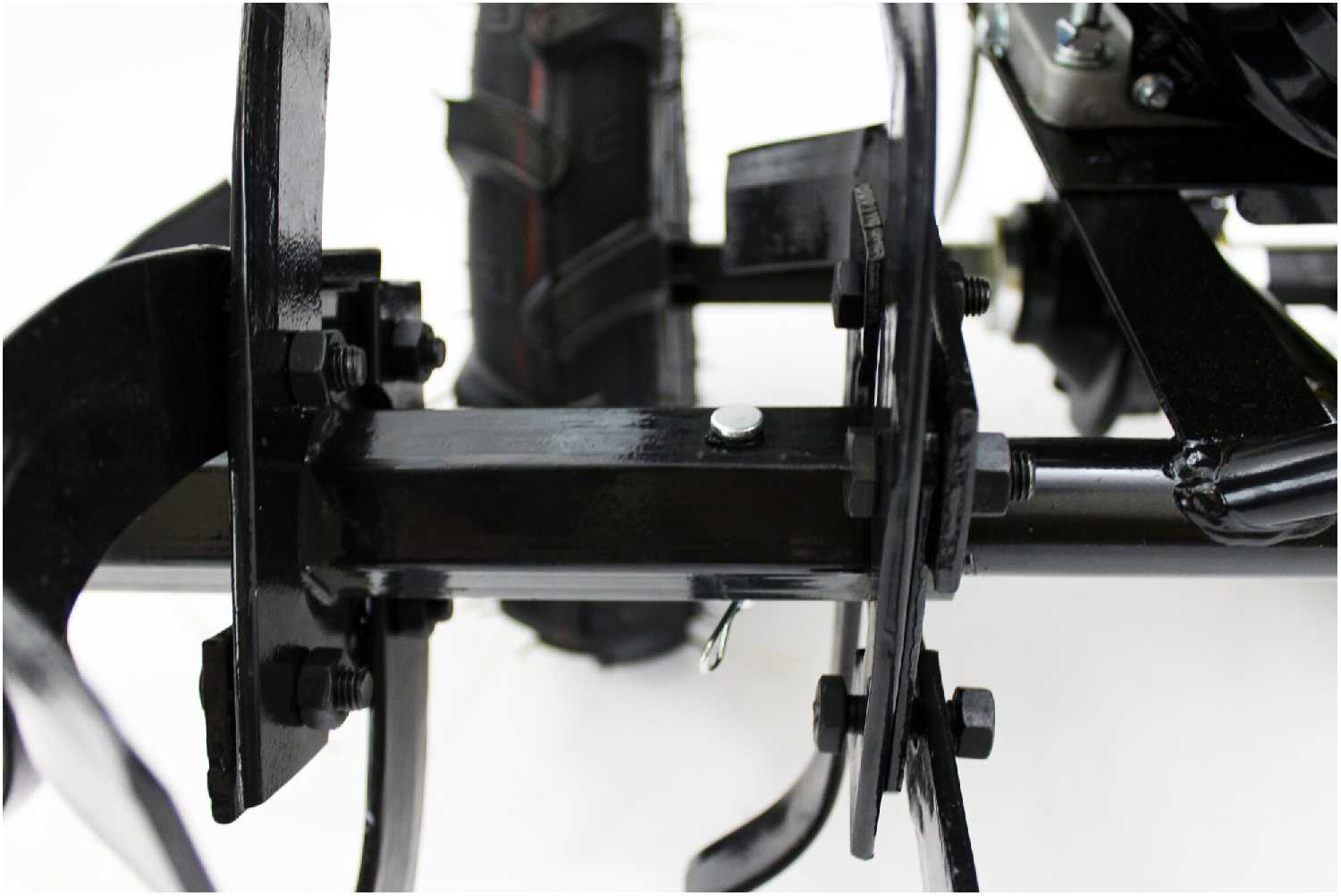 - Кронштейны для фрез, плуга и косилки позволяют быстро менять насадки, расширяя применение от культивации до снегоуборки.