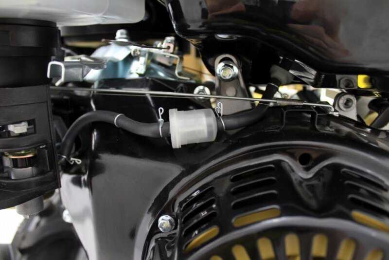 - Воздушный фильтр с маслом до отметки улучшает фильтрацию, обеспечивая стабильную работу без глохнущих на сухой почве.