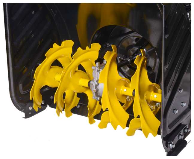 Шнековая система разделена на четыре независимых сегмента вместо двух, что позволяет продолжать работу даже при повреждении одного элемента. Металлические зубцы сохраняют остроту в течение 2-3 сезонов, однако при контакте с камнями или льдом возможна деформация.