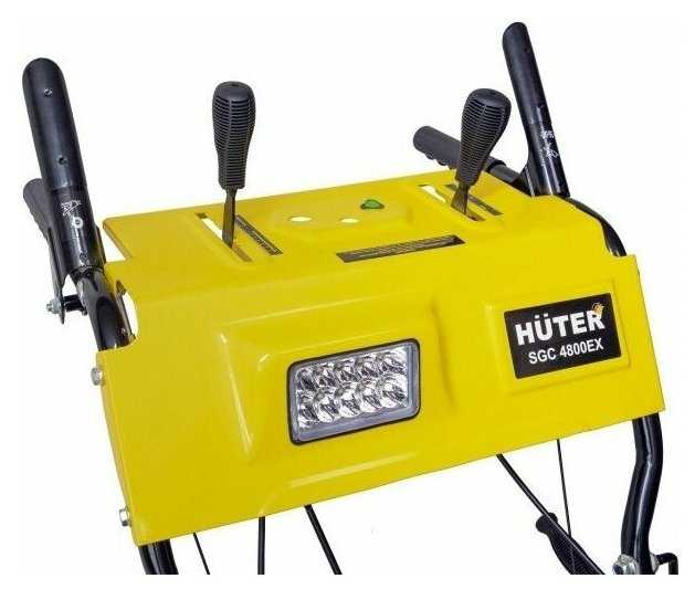 Huter SGC 4800ex в принципе тот-же самый по конструкции, мощности и проблемам с фрикционной передачи. Разница: выведено управление выбросом снега на панель управления, дополнительно установлены расширители захвата снега - практика показала, что эти опции не нужны.