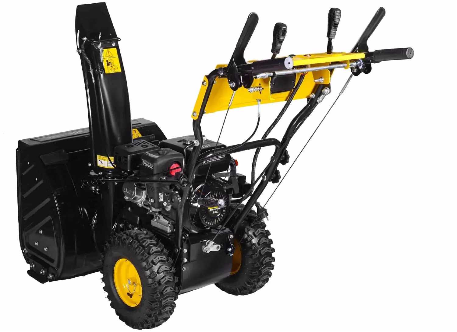 Снегоуборщик эффективно справляется с рыхлым и слежавшимся снегом высотой до 50 см благодаря металлическому зубчатому шнеку, который дробит даже лёд. Однако мокрый снег или наст высотой более 30 см вызывают перегрузку — дальность выброса падает с 5–6 метров до 2–3. Самоходная система с 6 скоростями вперёд и 2 назад обеспечивает хорошую маневренность, но на высоких оборотах колёса пробуксовывают в глубоких сугробах. Механизм регулировки направления выброса снега не фиксируется надёжно — ручка самопроизвольно сдвигается на максимальные обороты. Трос управления желобом расположен неудачно: он трётся о карбюратор, что приводит к оплавлению оплётки. Пользователи ценят подогрев рукояток и фару, но кнопки управления этими функциями расположены неудобно — их легко задеть случайным движением.