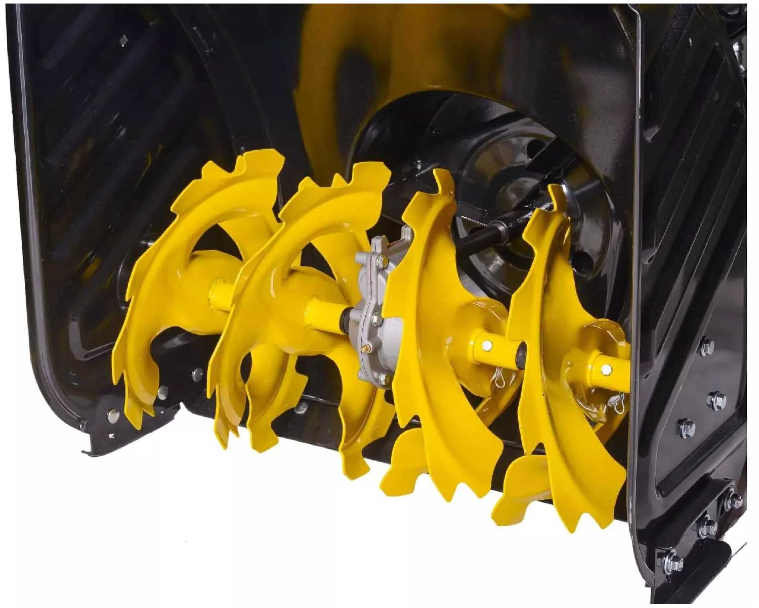 - Шнек с металлическими зубьями эффективно перемалывает слежавшийся снег и наледь.
