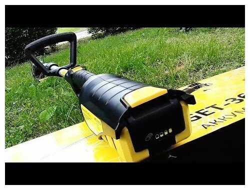 Триммер купил и не могу нарадоваться. Очень легкий и мощный триммер для аккумуляторного. Емкая батарея в комплекте, которая позволяет пользоваться триммером примерно час. Заряжается также. Не надо мучаться с разведением бензина, поэтому триммером может пользоваться даже женщина. Телескопическая штанга, благодаря которой, триммер занимает меньше месте. Легко перевозить в машине. На редукторе есть защитная скоба, которая защищает шпулю от повреждений.