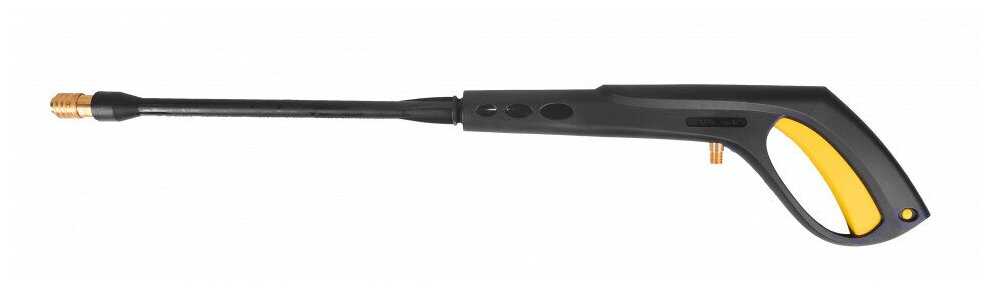 Пистолет мойки имеет эргономичную форму, которая удобно ложится в руку при длительной работе. Кнопки управления расположены оптимально — прямо под пальцами, что обеспечивает лёгкость и быстроту управления потоком воды. Пользователи отмечают надёжную фиксацию пистолета в гнезде на корпусе мойки, что предотвращает его потерю при транспортировке, а также равномерное распределение струи без необходимости повторной обработки поверхностей. -