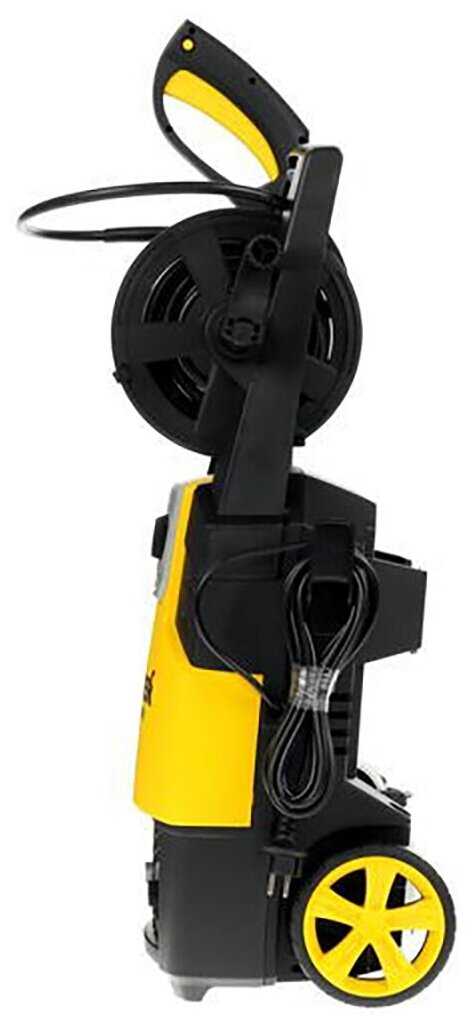 Конструкция мойки включает барабан для намотки шланга, который пользователи оценивают как очень удобное решение. Благодаря катушке шланг не болтается и не тащится по земле, сохраняя чистоту и предотвращая случайные повреждения. Система позволяет легко вытягивать необходимое количество шланга и так же просто сматывать его после работы, что значительно упрощает процесс эксплуатации и хранения оборудования. -