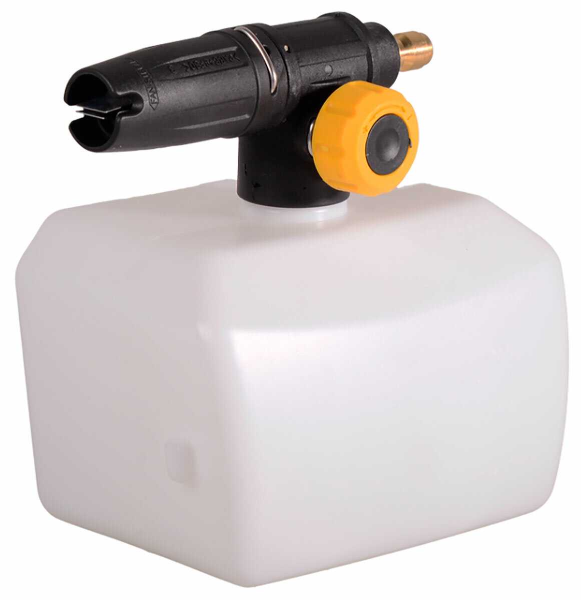 - - Пеногенератор вставляется вместо форсунки и находится далеко от рукоятки.
