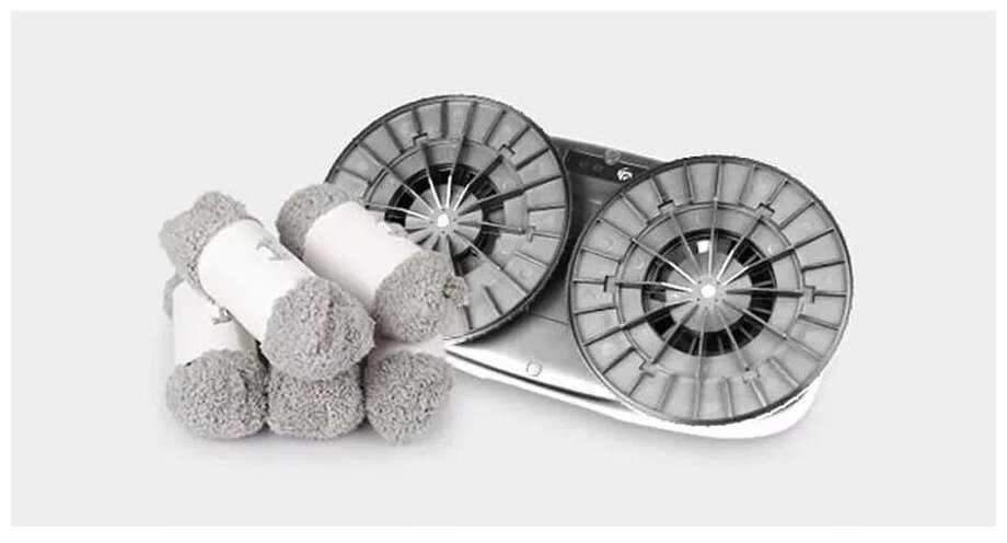 • в инструкции сказано, что фибру устанавливать нужно сухую; на картинке, иллюстрирующей этот процесс, мокрую тряпку отжимают. в инструкции к влажной уборке написано, что воду нужно разбрызгивать непосредственно на фибру из бутылочки с распылителем, который лежит в упаковке. на ютубе вообще каждый делает как хочет, кто льет заранее, кто сначала гоняет его насухо и только потом все это мочит, поэтому опытным путем правильного подхода вычислить так и не удалось