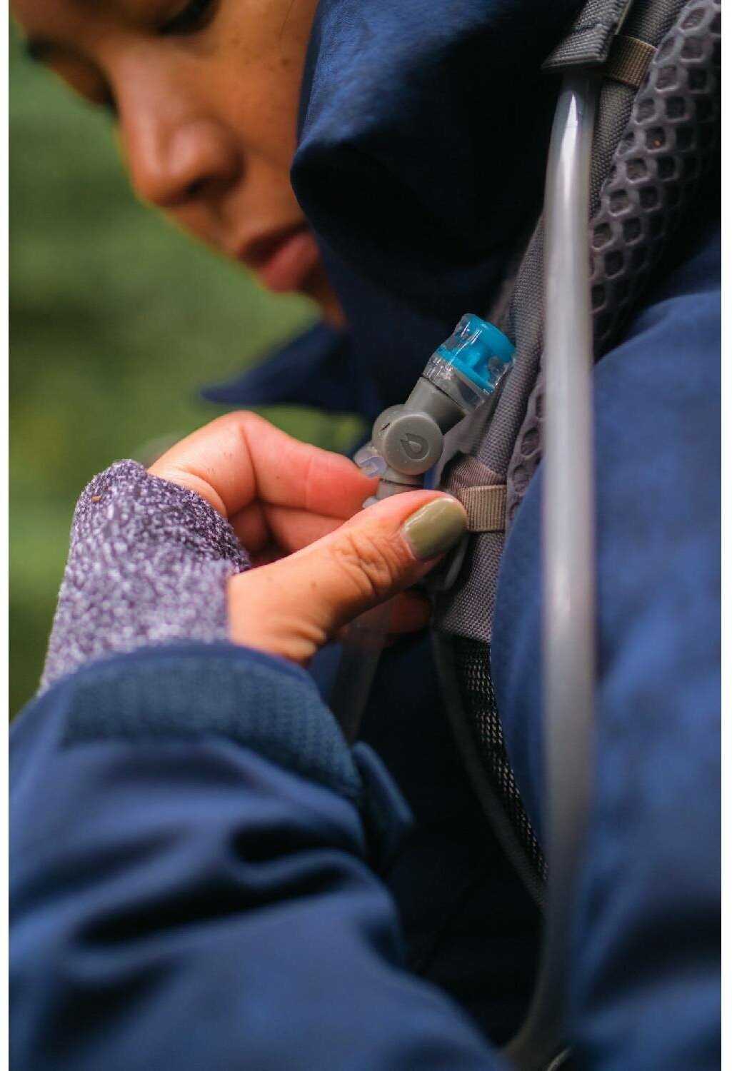 Доливать в него воду в процессе прогулки будет трудно, т.к. всю конструкцию надо разобрать, а для этого надо трубку отстегнуть.
