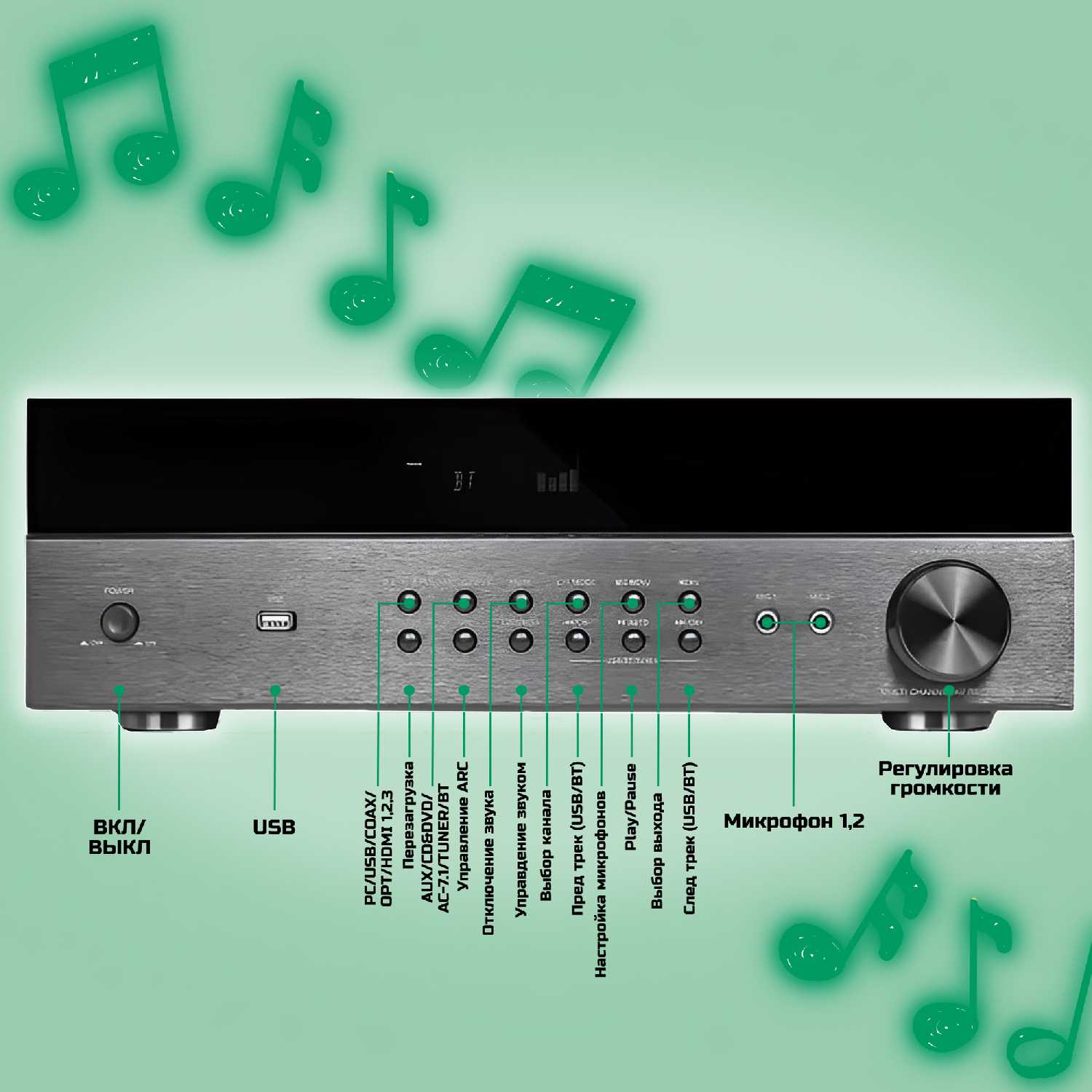- + хороший усилитель для такой цены. много разных входов.