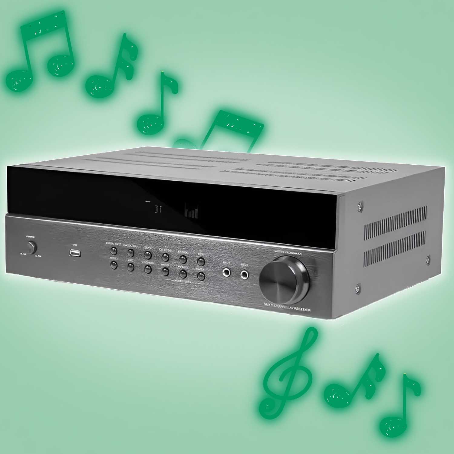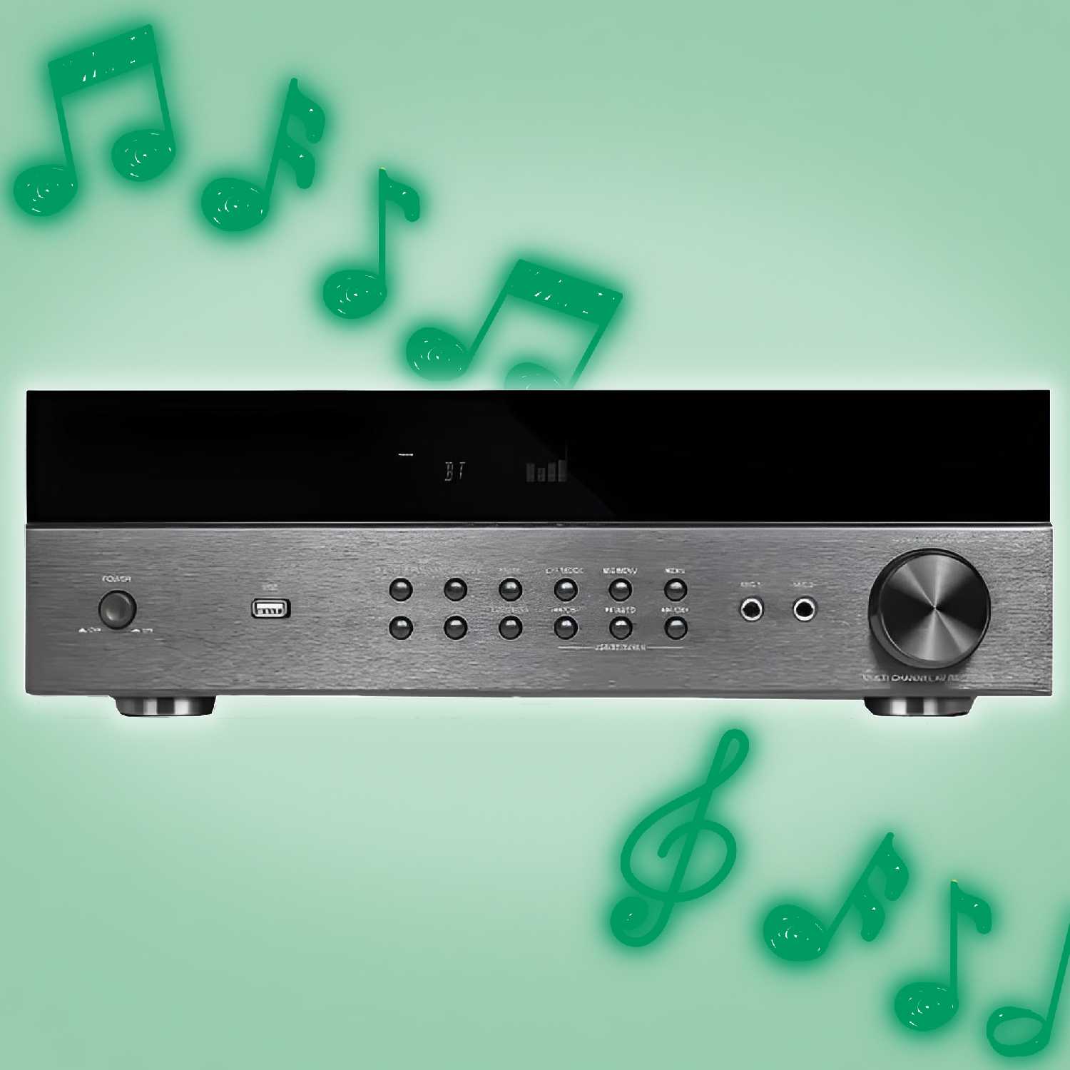 - + Отличный усилок! Есть всё, что нужно для человека, любящего музыку, который любит смотреть фильмы с объемным звуком и т.д.