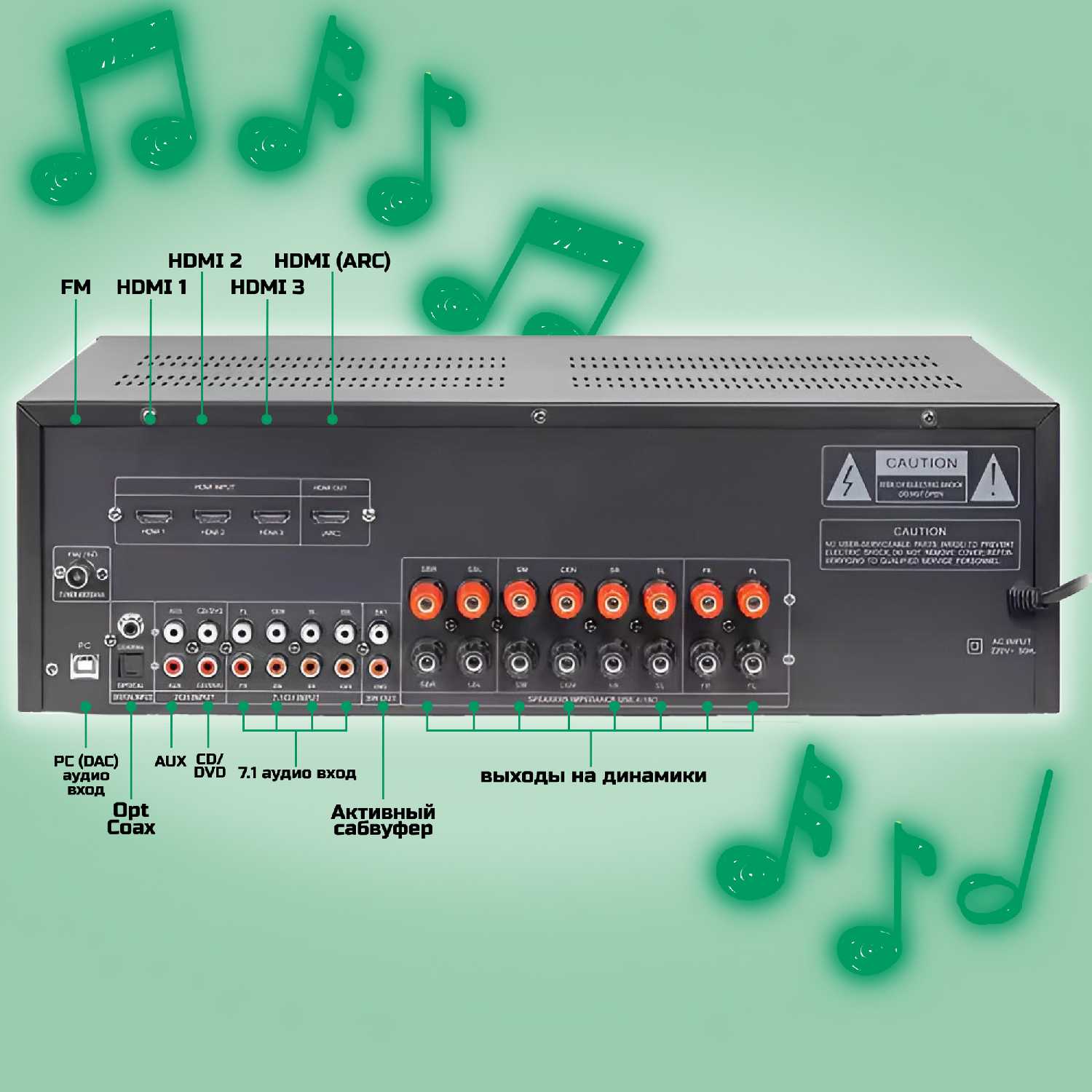 Особенно, радует наличие подключения пассивного сабвуфера, чем не могут похвастаться большинство ресиверов