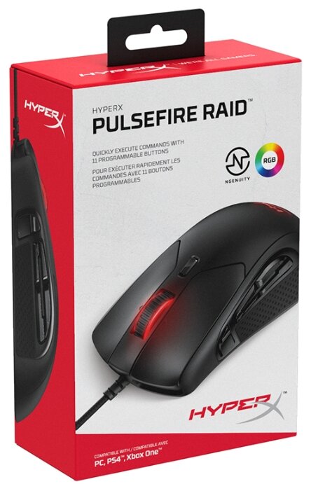 | Дополнительная информация : | сенсор мыши Pixart PMW3389, переключатели Omron, конструкция с раздельными кнопками для достижения сверхчувствительности, настраиваемая RGB-подсветка, персонализированная настройка с помощью ПО HyperX Ngenuity, совместимость с пк и игровыми консолями |