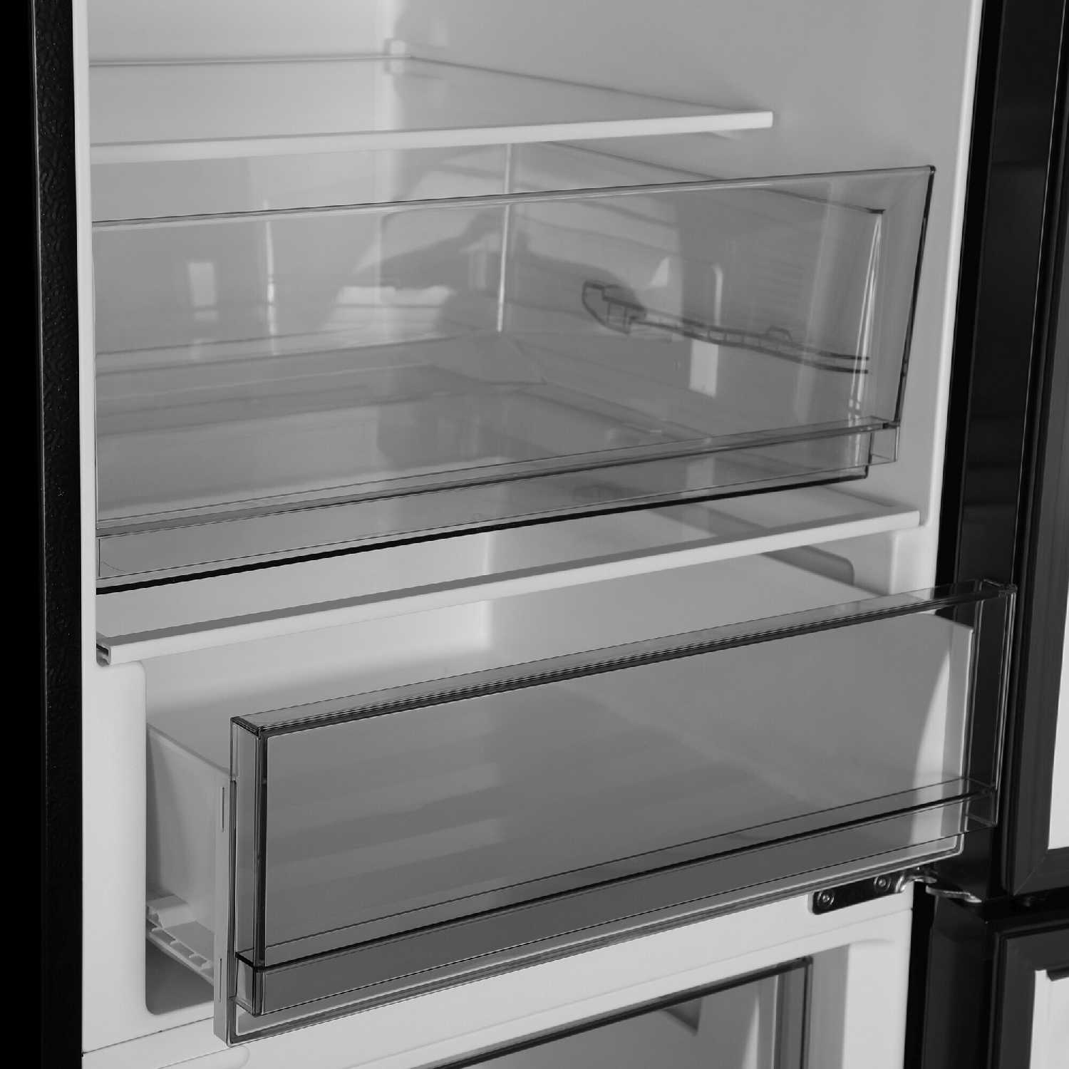 - + Класс энергопотребления А+, смотрится современно и стильно. полки внутри прочные, из закаленного стекла. и плюс в разморозке не нуждается.