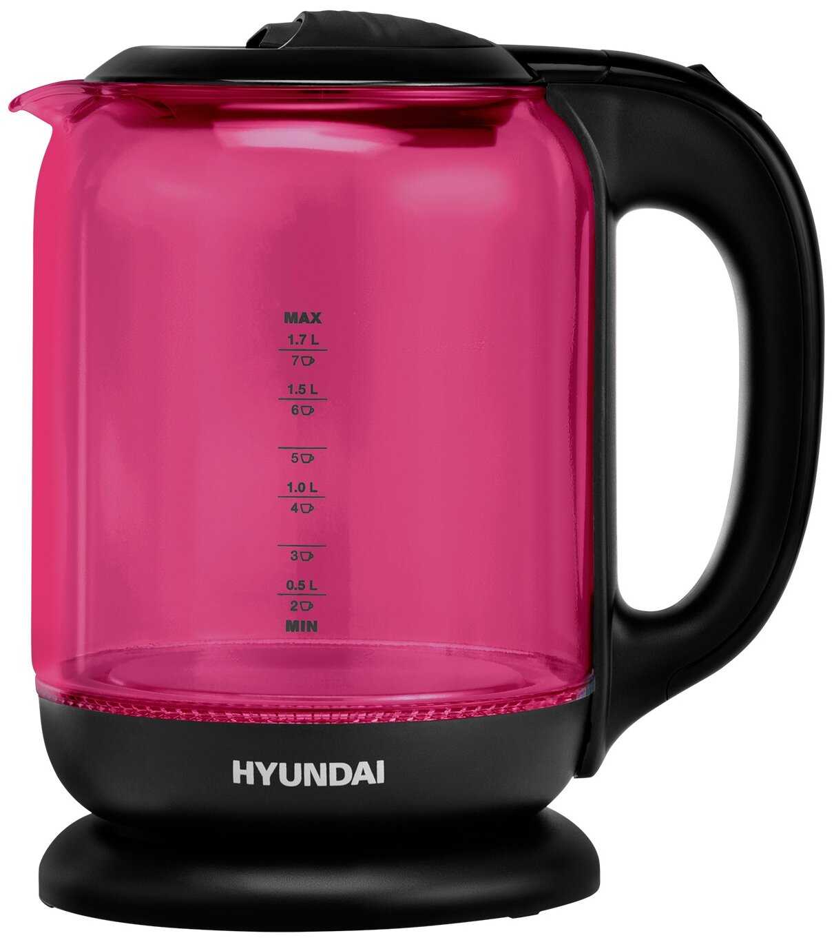 | Дополнительная информация : | Чайник электрический Hyundai HYK-G4808 2200 Вт чёрный малиновый 1.8 л стекло |