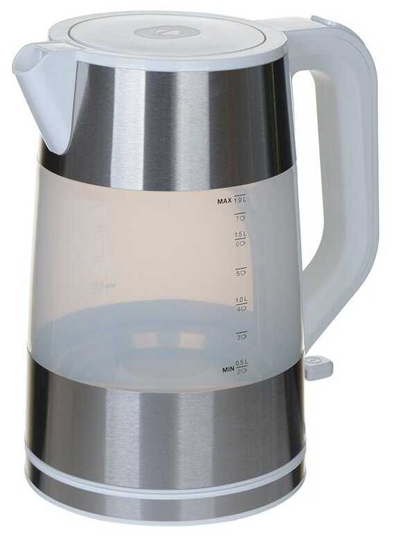 - + Стильный дизайн, есть защита от включения без воды, объём 1,9 литра.