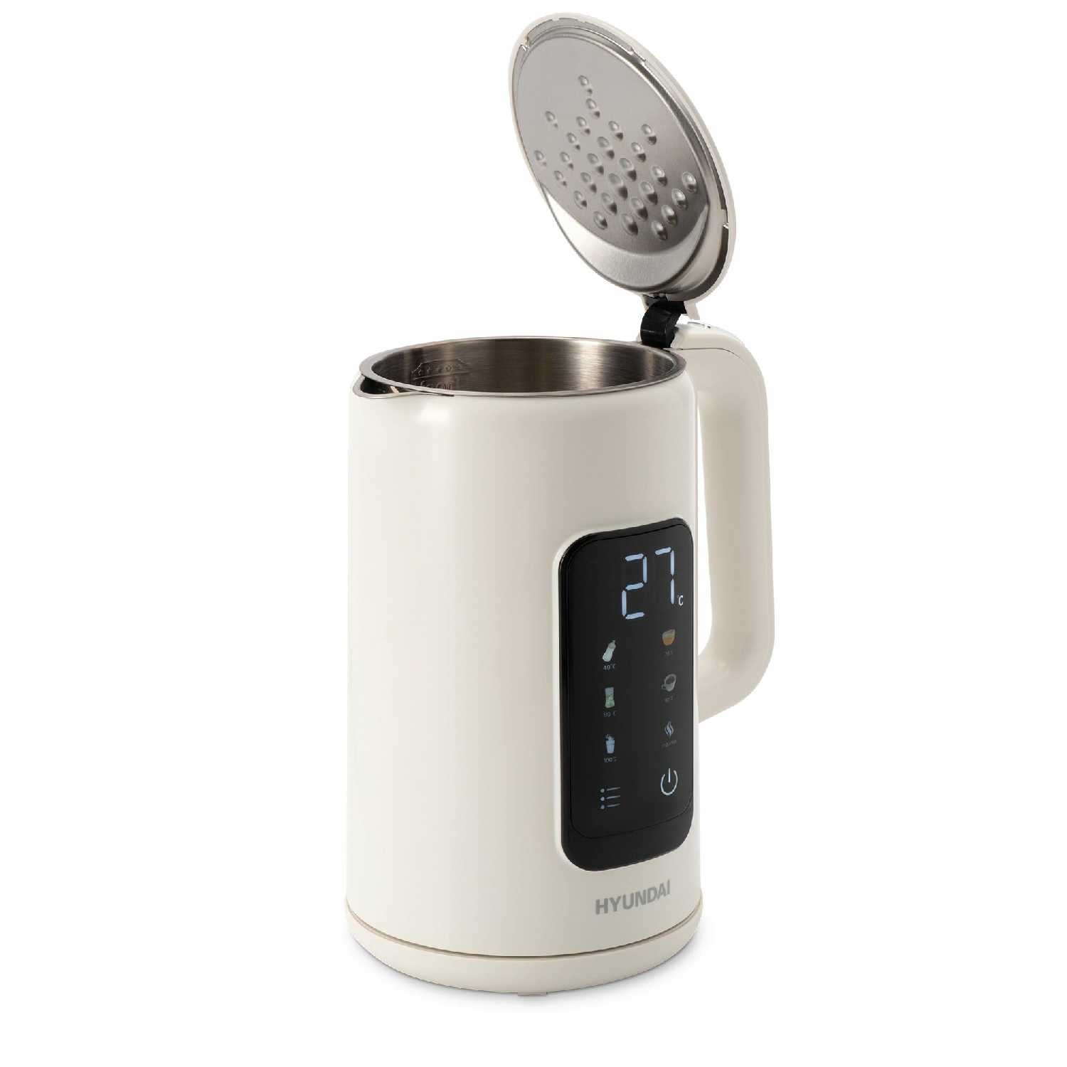 - + Чайник Hyundai 1.7л понравился своим дизайном компактностью.Удобный дисплей управления.Воду нагревает быстро.Цена соответствует товара.